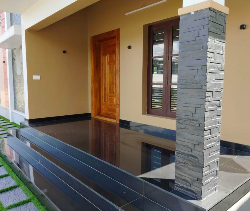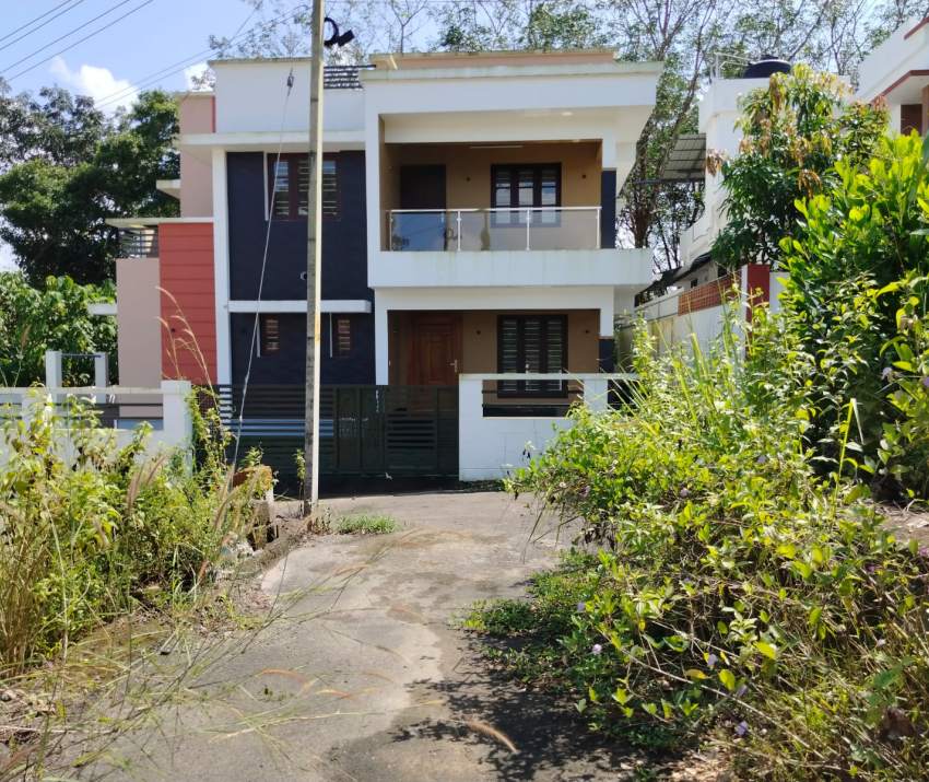 Beautiful new villa for sale in Mulanthuruthy, Ernakulam, featuring 3 spacious attached bedrooms, a modern kitchen, and well-designed living and dining areas.